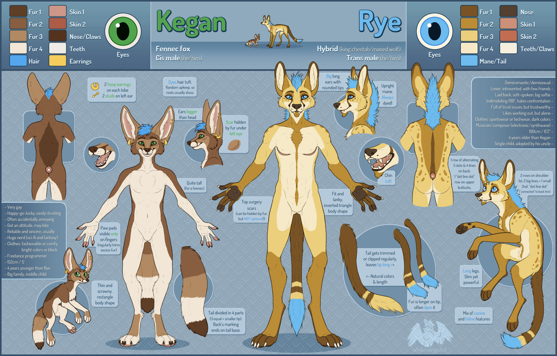• References to the character(s) (reference sheets, links to galleries, etc)