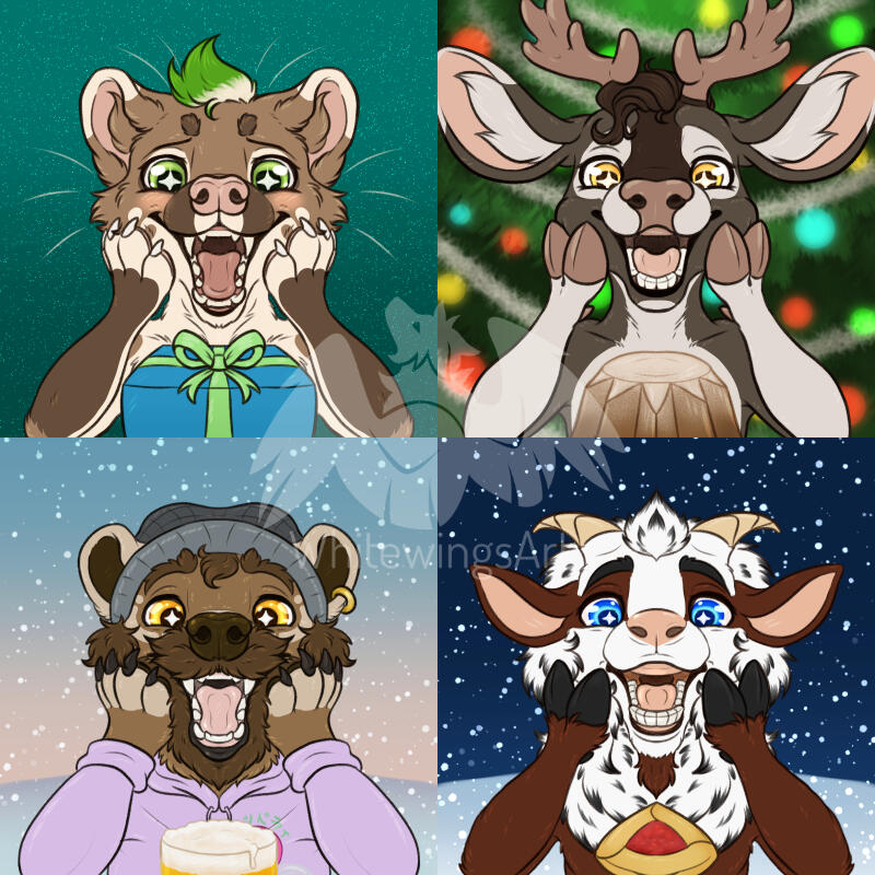 Regular commissions openings, Your Character Here (YCH), auctions and special openings are usually advertised in advance and announced simultaneously on my Telegram channel, Bluesky and Furaffinity.